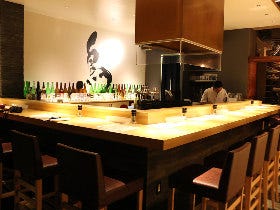 1日限定40食の「鶏そば」が供される場所は、『焼鳥 山もと』の広々としたカウンター(写真下)。