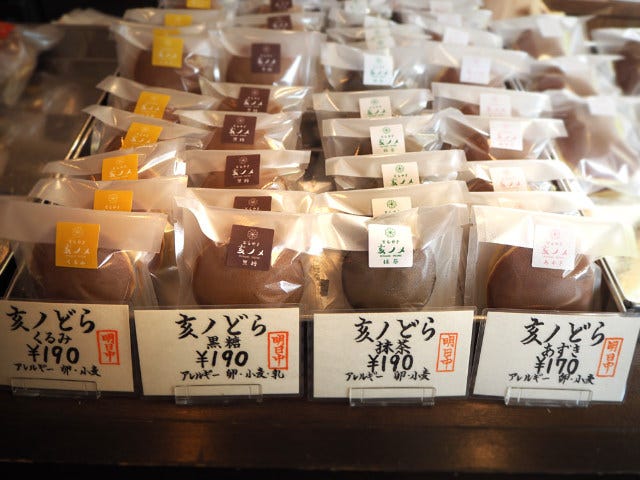亥ノどら あずき 170円、抹茶・黒糖・くるみ 各190円