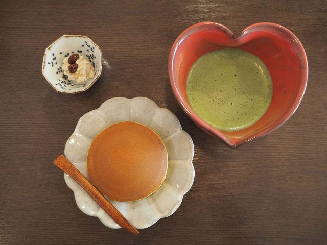 そんな茶碗でいただく抹茶は格別。ほろ苦い風味がどらやきの甘さを引き立て、ホッと和むようなおいしさだ。