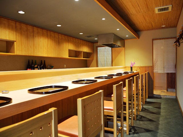 カウンターは、席と席との間にゆとりを持たせているので、隣を気にせず快適に食事をすることができる。