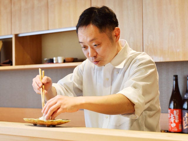 カウンターから迎えてくれるのが、店主の下田哲也さん。祇園の日本料理店を経て、名料亭『和久傳』で約13年間腕を磨いた人物だ。