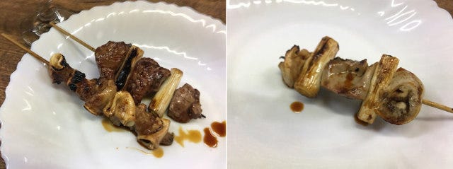 やきとり(なんこつ/こぶくろ/あぶら/かしら/たん/はつ/れば) 130円