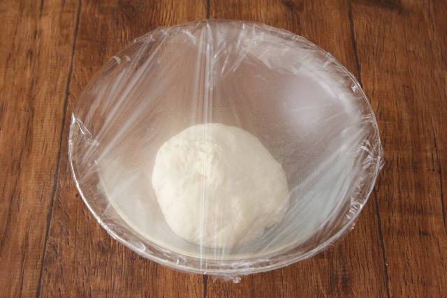 ⑥ ⑤の生地が乾燥しないようにラップなどでぴっちりと覆い、35℃で40分ほど一次発酵をさせる。