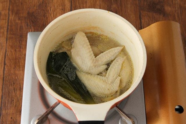 【point4】スープはうまみたっぷりの鶏手羽先でとる!