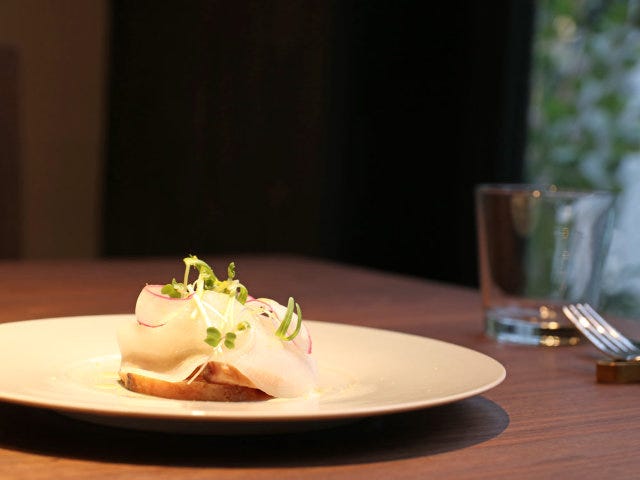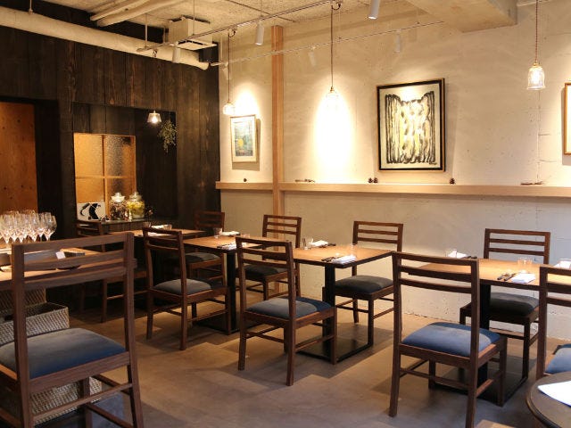 メニューはランチ・ディナー共に月替わりのコースが3パターン用意され、カウンター席ではアラカルトも楽しむことができる。メニューを作る際に大切にしていることは、全体を通してのバランスの良さと、季節にふさわしい調理法や食材を使うことだ。