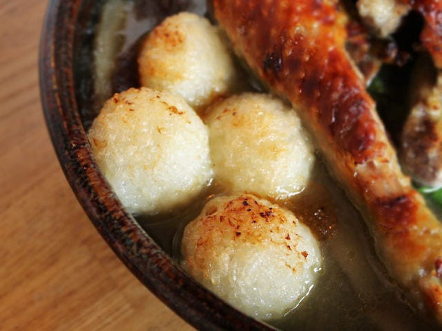 松岡さんが秋田県出身ということもあり、郷土料理にアレンジを加えた「比内地鶏 だまこ鍋風煮込み」(写真下)もメニューにイン。