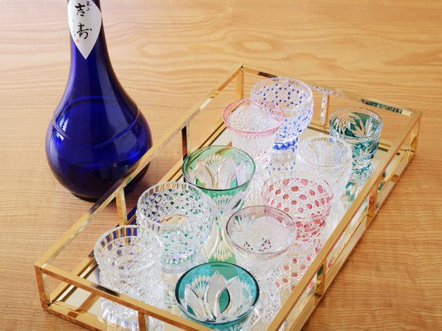実は利き酒師でもある鈴木さん。日本酒はぬる燗用を滋賀県の『美冨久酒造』、冷酒用を京都の『松井酒造』でオリジナルに醸造してもらっており、ぬる燗は清水焼の作家物、冷やは江戸切子のグラスで味わえる趣向。また「黒龍」の全銘柄を揃えるなど全国の地酒を用意し、シャンパン、ワインも鈴木さんの目にかなったものを揃える。