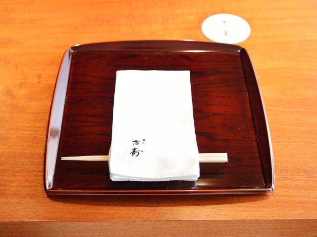 食事は昼は12時、夜は18時・19時からの一斉スタートで、スタッフ全員が並んでのあいさつから始まる。しばらくすると店内は少し暗くなり、メインの照明はピンポイントでまな板の前の鈴木さんに。いよいよ美味なるショータイムの幕開けだ。