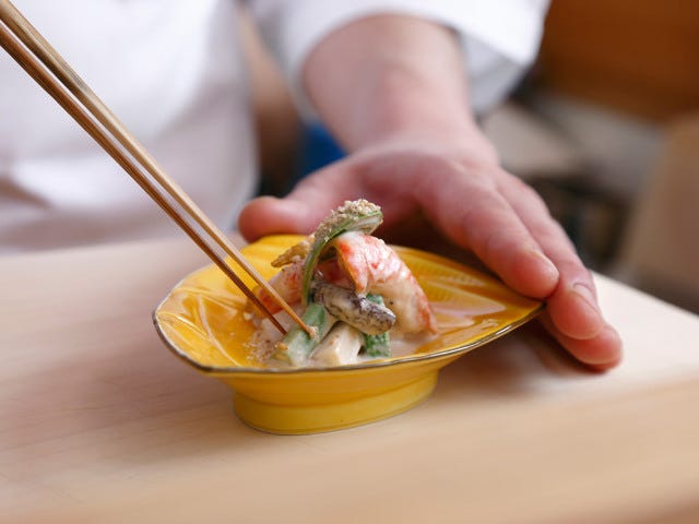 そうした考えのもと、提供する料理はコース1本に絞っている。「茶室に入れば誰しも平等」と、武士であろうと日本刀を持ち込むことが禁じられたように、誰に対しても同じ料理を提供。その姿勢を貫くことは、どんな食通にも自信を持って出せるだけのレベルを保ち続けるということだ。