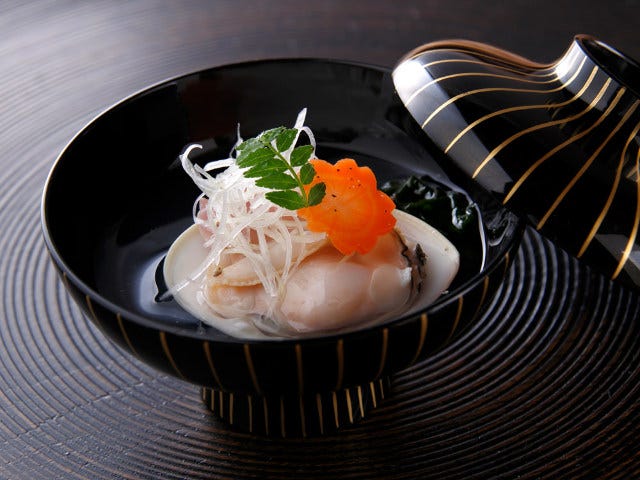 日本酒はまた、吸い物とも相性がいい。大ぶりな貝が主役の「ハマグリの潮仕立て」(写真上)の繊細さを堪能するために、次に飲む一杯を決めるのもまた一興。