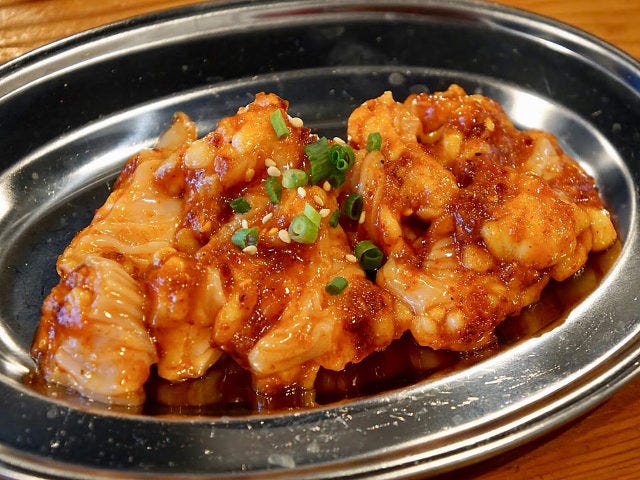 普通ナムルはもやしやワラビ、ホウレン草などがそれぞれで盛られているのだが、こちらは混ざって登場! これが口に入ると混然一体となって立派なつまみとして成立する。