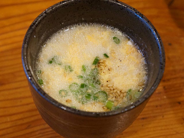うわ! いいですね、お茶の湯飲み一杯くらいのチョコっと卵スープ(写真上)がなんとも体に染みわたるナイスなサイズ!