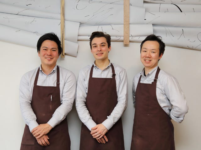 ▲左から、ソムリエの山本良憲さん、スタッフのベネト・ティボさん、シェフの葛窪拓真さん
