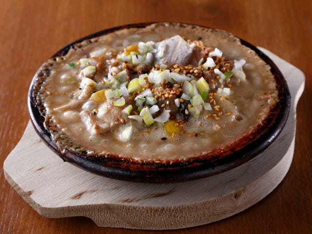 天然小鯛を1尾使用し、カツオと昆布の一番だしと鯛のアラでとっただしで炊き上げている。鯛のうまみにショウガがきいた味わいは、たっぷり食べて飲んだ後でも、不思議とスルスル入ってしまう。