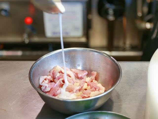 - ・サラダ油をまとわせることで、片栗粉でくっついた肉同士が、炒めたときに離れやすくなる。