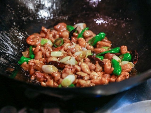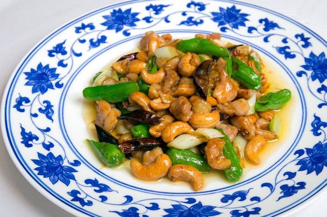 「鶏肉とカシューナッツのピリ辛炒め」は、四川では肉とピーナッツのみで作りますが、日本では彩りに野菜を入れることが多いです。