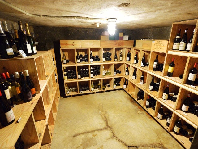 店の中央部には地下のワインカーヴに下りる石段があり、お気に入りを自分で選んでもOKと言うのも面白い。