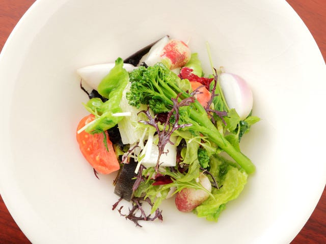 この日は黒大根やあやめ雪カブ、赤水菜、スティックブロッコリーなど実にさまざま。濃い色や、生き生きとした見た目からして実においしそう! いただいてみるとシャキシャキした心地よい歯ごたえや、口いっぱいに広がる瑞々しさなど、個性ある野菜本来の味に感動。どれも甘みやうまみが濃く、生命力をいただいている気持ちにさせてくれる。
