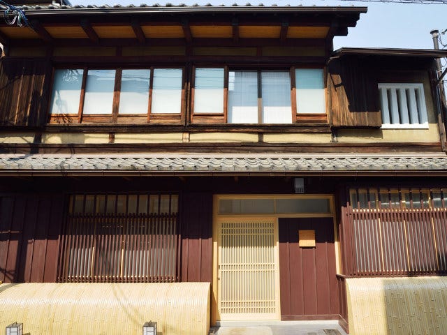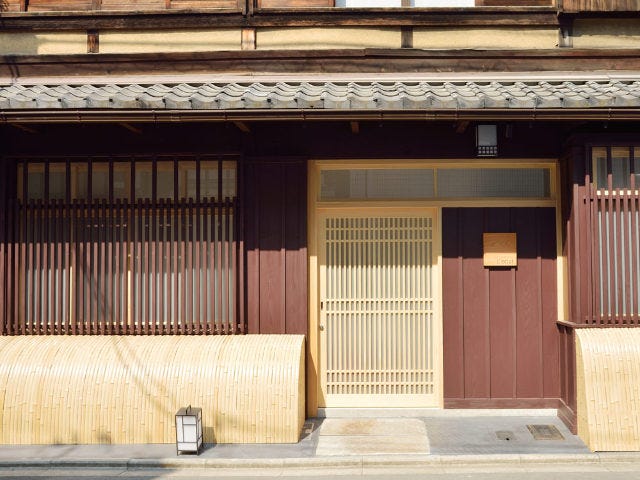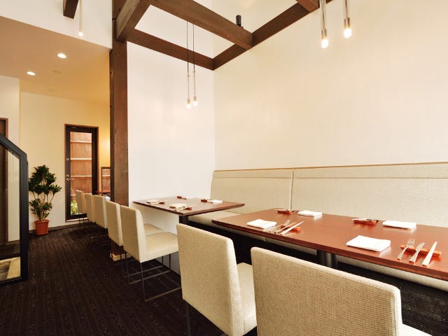 かつて豆腐店としてにぎわいを見せていた築100年の京町家をリノベーション。京都の落ち着いた街並みにしっくりと溶け込む外観だが、扉を開けると目に飛び込んでくるのは、吹き抜け天井が心地よさを高めてくれる空間だ。ゆっくりと食事ができるテーブル席に加え、ひとりで訪れても寛げるようなカウンター席が用意されている。