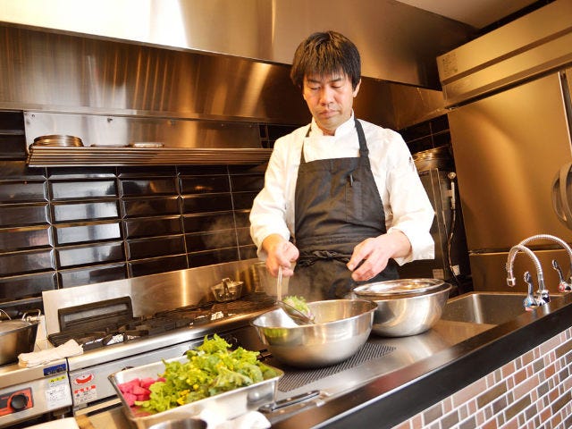 シェフを務める小栗英樹さん(写真上)は、伝説の料理番組『料理の鉄人』でおなじみのムッシュ・坂井宏行さんがオーナーを務めるフレンチレストラン『ラ・ ロシェル』で約17年間活躍した人物だ。