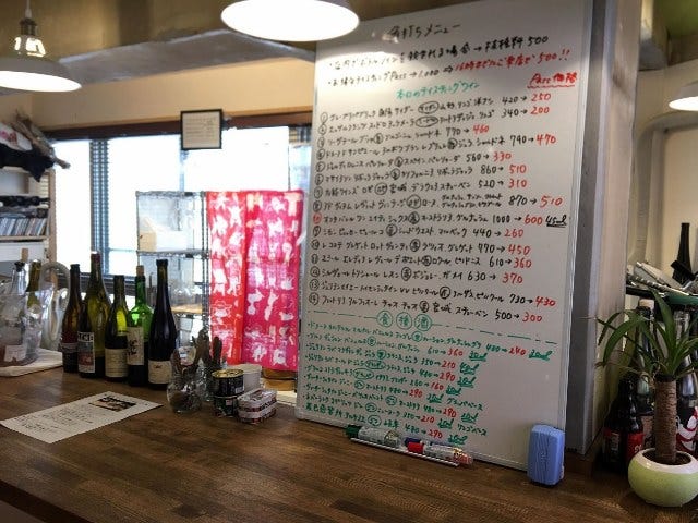驚くのは、ホワイトボードに書かれたグラスワインの値段だ。例えば『フジマル醸造所』のデラウェアで造られた国産ワインは330円。猫のエチケットで知られる入手困難な目黒(浩敬)さんの『ファットリア アル フィオーレ』でさえ、ほぼワンコインで飲める。