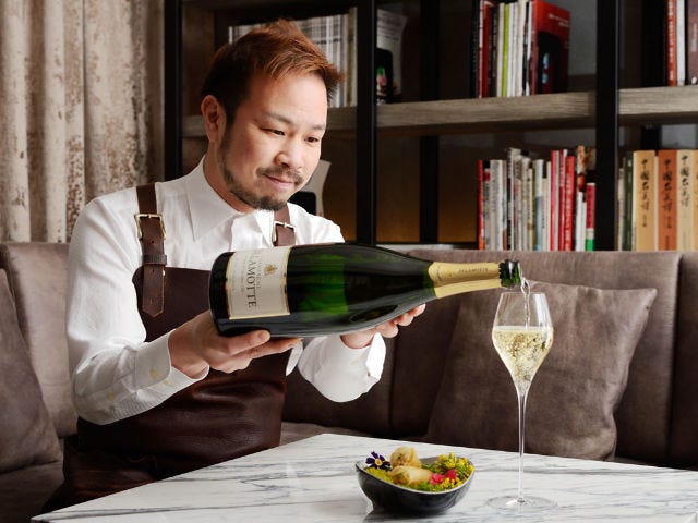 「シャンパーニュやワインはもちろんのこと、地酒や旬の果実を用いたカクテルなども用意しています。お酒でも“旅”を堪能していただけます」。またノンアルコールのペアリングもOK。そんな細やかな配慮も、ゲストに満ち足りた“時”を与えてくれる。