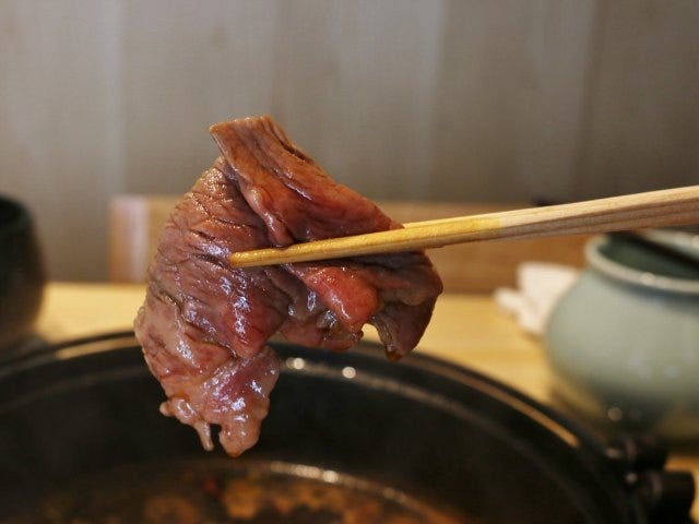 熟成肉と聞くと、まず塊肉である「ステーキ」を思いうかべる人がほとんどだろう。ところが、熟成肉のおいしい食べ方はステーキだけに限られたものではなかった。我々日本人にとってのご褒美鍋「すき焼き」でいただく薄切り熟成和牛が、これほどまでに味わい深いとは…。