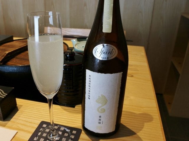 すき焼きにおすすめのドリンクが、秋田県『新政酒造』のスパークリング日本酒「白麹仕込み純米酒 亜麻猫(あまねこ)スパーク」だ。肉も割り下も濃厚なので、「亜麻猫スパーク」の甘酸っぱさをもった軽やかな味わいが、口の中を爽やかにまとめてくれる。