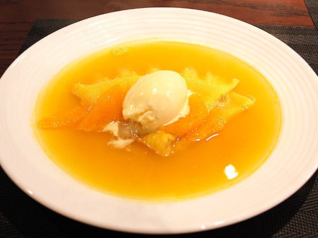 一番人気は、「クレープシュゼット」(写真上)。焼き上げたクレープ生地を、グラン・マルニエでフランベしたカラメルオレンジソースで煮込み、自家製のバニラアイスをのせた一品だ。