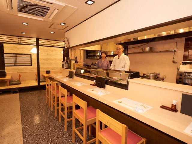 和モダンな雰囲気の店内には、カウンターや椅子席のほかに個室も用意されており、接待や特別な日の会食にも好適。持ち帰りできる珍味セットなどもあるので、手土産を用意する心配もいらない。