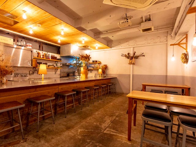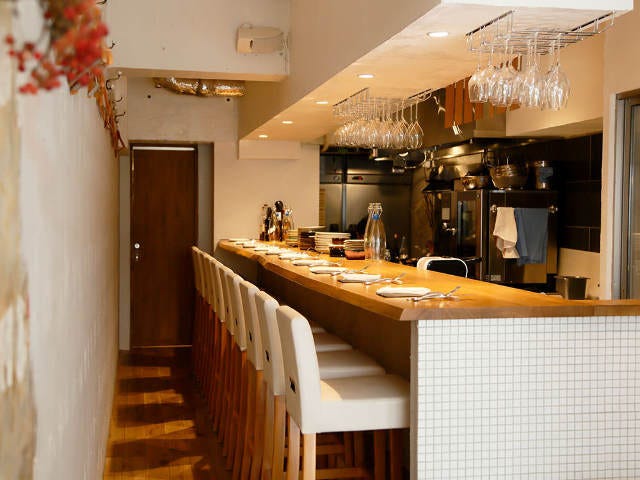 店内は、お洒落でありながら、肩肘張らないアットホームな雰囲気が漂う。その上、料理はコースでもアラカルトでもリーズナブルに楽しめ、こだわりのドリンクも広く用意されるなど、使い勝手抜群な点も大きな魅力。