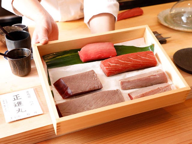 「目利きの仲卸さんが仕入れてくれるマグロは、産地や魚体の大きさにかかわらず、質がいい。例えばこの時期は脂の具合のいいアイルランド産のマグロを使っています」と坂本さん。