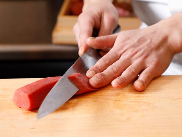 さらに上質なマグロのお腹の下や尻尾寄りなどを仕入れており、うまく包丁を入れたり寝かせ方や塩の振り方などを調節することで、コストパフォーマンス面を維持し、味はより高みを目指している。