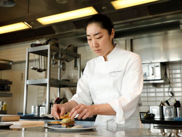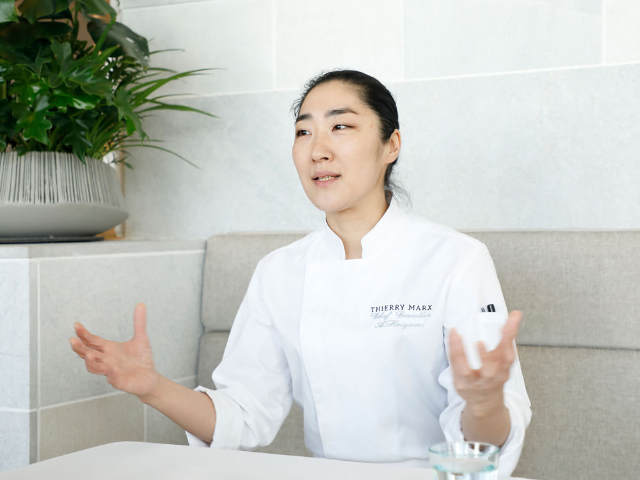 マルクス氏から全幅の信頼を寄せられ、両店舗のエグゼクティブシェフを任されているのが、小泉敦子シェフだ。調理師学校を卒業後、『ミクニ・マルノウチ』などで修業を積み、さらにフランスに渡り、当時マルクス氏が総料理長を務めていた『Cordeillan-Bages(コルディアン-バージュ)』で研鑽を積んだ。その実力を買われ、マルクス氏が『Sur Mesure par Thierry Marx(シュール ムジュール パール ティエリー マルクス)』の総料理長に就任する際に、セカンドシェフに抜擢された。