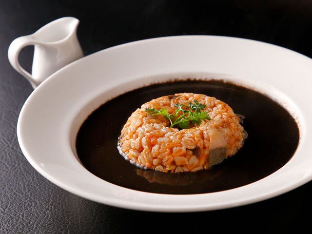 カレーソースのつややかな黒い色はイカ墨。古酒との相性を考え、スパイスは加えすぎないように入念に味付けされているのだそう。