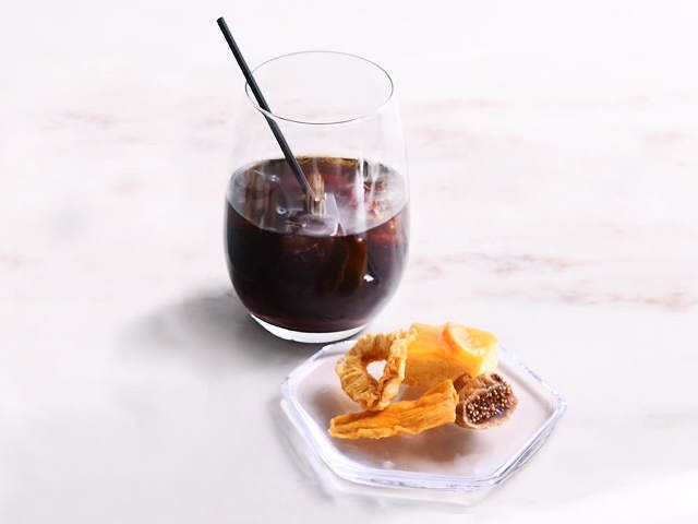 プレートの最後は、こだわりのドライフルーツとパウンドケーキとともに、食後のドリンクでほっと一息。ドリンクは、『丸山珈琲』のオリジナルブレンドコーヒー、紅茶、ハーブティーからお好みで。ドライフルーツとパウンドケーキはお土産用にテイクアウトも可能。