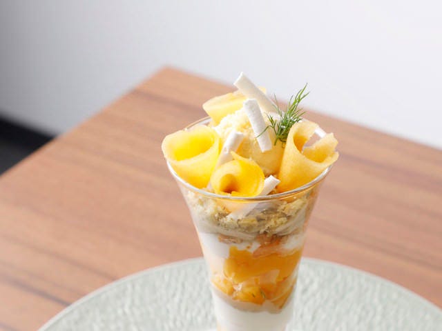 「スイーツだからと決めつけずにいろいろな食材を取り入れてみると、味わいに膨らみが生まれると思います」と語る延命寺さん、これまでの概念にとらわれない自由なスタイルのパフェが楽しめそうだ。