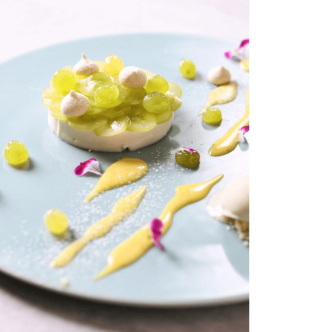 シャインマスカットとデラウェアのみずみずしい味わいを、まろやかな杏仁豆腐がやさしく調和する一品。