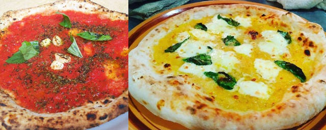 当時の教えを忠実に守り、生地の材料は小麦粉、水、酵母、塩のみ。高温で焼き上げ、表面はパリッと中はモッチリ、本場さながらのナポリピッツァが味わえる。