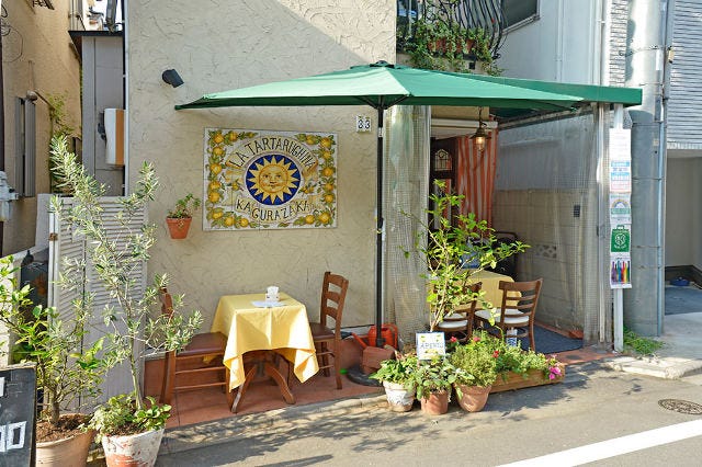 東京メトロ東西線「神楽坂」駅の程近く。表通りから横道に入り、住宅街の中を歩いて行くと、ひょっこりと“イタリア”が現れる。2014年にオープンした『トラットリア・ラ・タルタルギーナ』だ。
