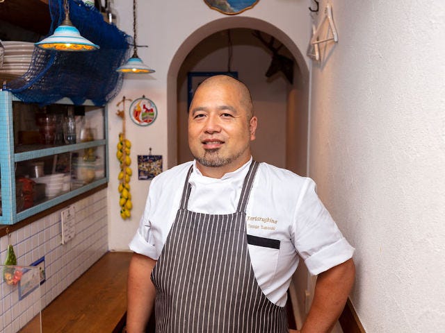 イタリア料理の楽しさに惹かれて、20代で和食からイタリア料理へと転向。都内のイタリア料理店を経て、当時まだ珍しかったイタリア、プーリア州料理の第一人者、江部敏史シェフ(現在、南青山『リストランテ コルテジーア』シェフ)の下で研鑽を積んだ。その後、本場でしかできないことを学ぼうとイタリア・プーリア州に渡り、1年間みっちり、現地のレストランで学んだ。