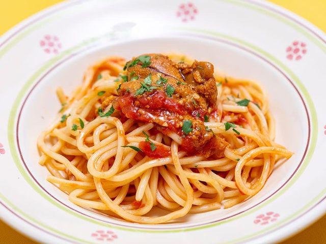 そんなパスタに、上質な国産ウニを惜しげもなくたっぷりトッピング。トマトソースにもウニを混ぜ込んでいるので、トマトの爽やかさとウニの濃厚な味わいを存分に味わえる贅沢なパスタだ。