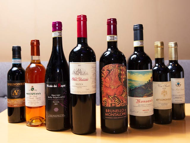 トスカーナ料理を引き立てるのは、何と言ってもワイン。「ワインのないトスカーナ料理なんて」と、選りすぐりのワインがそろう。「今夜はキャンティ1本でいこう」、「お祝いだからパ〜っと開けよう」など、中村さんに相談してみよう。ワインセラーには秘蔵ボトルもあり、上記写真内に1本潜んでいる。(さて? どれだろう? 正解は来店時に)