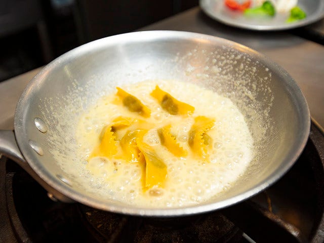 肉と野菜を詰めたラビオリを自家製のバターソースで仕上げたこちらは、シンプルな見た目とは裏腹に、その作り方はとても細かい。