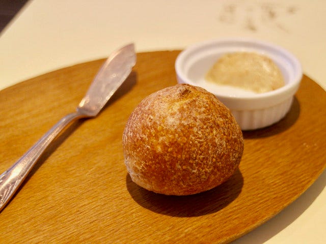 店内を見渡すと、どのテーブルにもワイングラスに白や赤が揺れている。そそられて、1杯だけ自分にご褒美だ。白ワインをお願いすると、マダムの花澤めぐみさんが、「メインに合わせて、アルザスをどうぞ」。