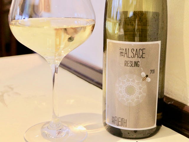 バゲット生地の丸パンに、豚肉のリエットを付けて頬張りながら、このアルザスの白ワインに合うメインディッシュって何だろう? と想像をめぐらす。