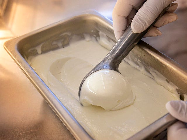 レシピを教わることができたきっかけは、『エルカノ』を訪れた際にシェフと会話したこと。気さくな人柄に緊張がほぐれ、思い切って想いを伝えたところ、製法だけでなくアイス作りに使用しているマシンまで教えてもらえたのだとか。