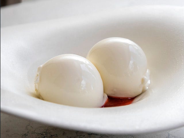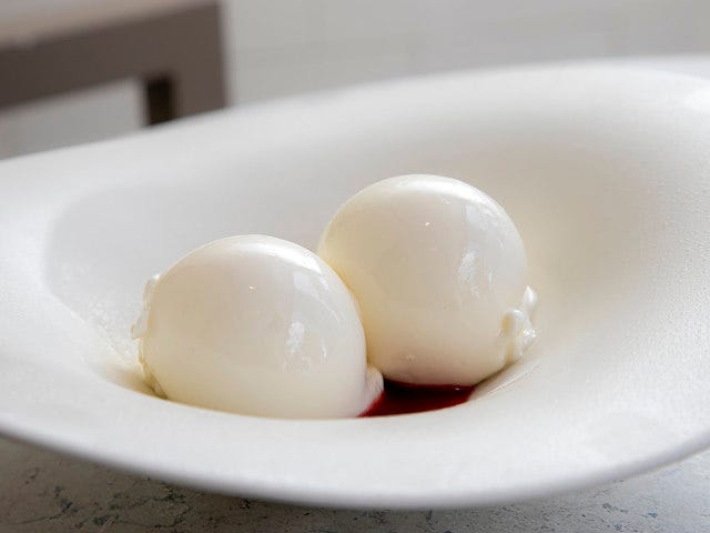 1964年創業の『エルカノ』は、世界中からグルマンが訪れることで知られるミシュラン星付きレストランだが、こちらの店のチーズアイスに惚れ込んだシェフパティシエの戸谷尚弘さんが、同店のシェフ直々にレシピを教わり、再現させた一品なのだ。