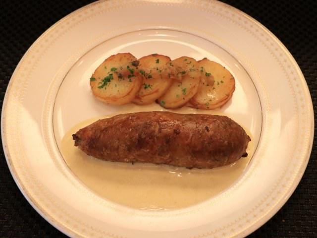 こちらは、豚の直腸に小腸や胃袋、豚ミンチ、野菜などを詰めた「豚の内臓の腸詰め(アンドゥイェット)」(写真上)。カリカリの皮と多彩な食感の中身のコントラストもユニークな一皿だ。
