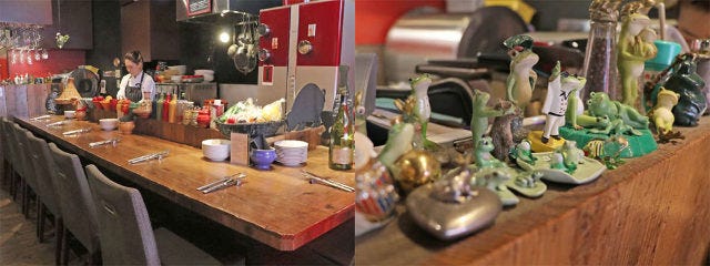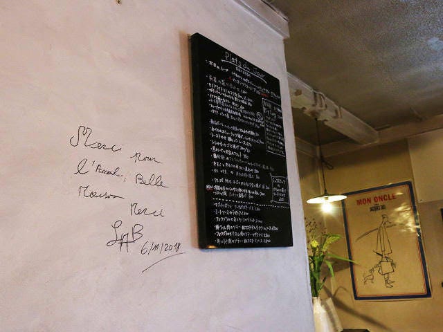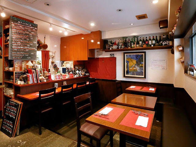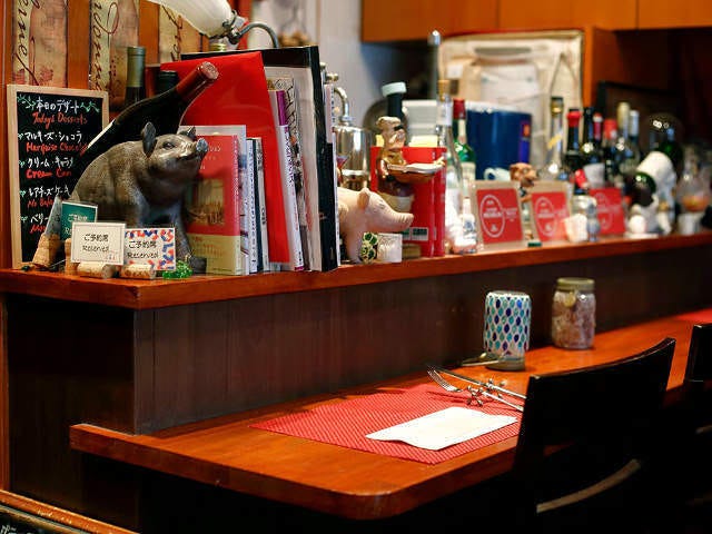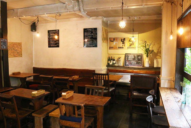 経年劣化によって味が出た壁や床、アンティークのテーブルや椅子が醸し出す雰囲気がなんとも心地よく、夫妻がイメージしていた通り、ヨーロッパの田舎にある、地元民に愛されるレストランそのもの。